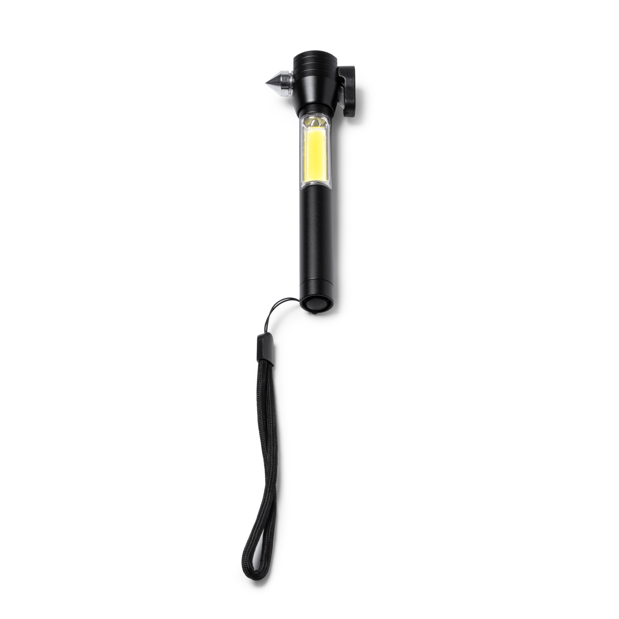 Linterna multiusos de aluminio con función martillo, rompecristales y cuchilla corta cinturones. Pila AAA incluida.