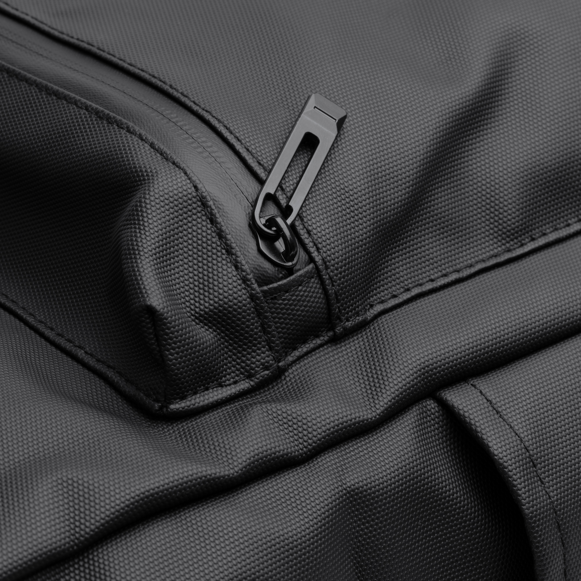 Mochila multifunción realizada de Pu Leather. Gran compartimento principal de apertura extensible con corchetes laterales y cierre de segurid. Bolsillo acolchado interior de 18″. Bolsillo exterior frotal con cierre de cremallera impermeable y dos bolsillo laterales. Cinta para trolley. Capacidad de 21L.