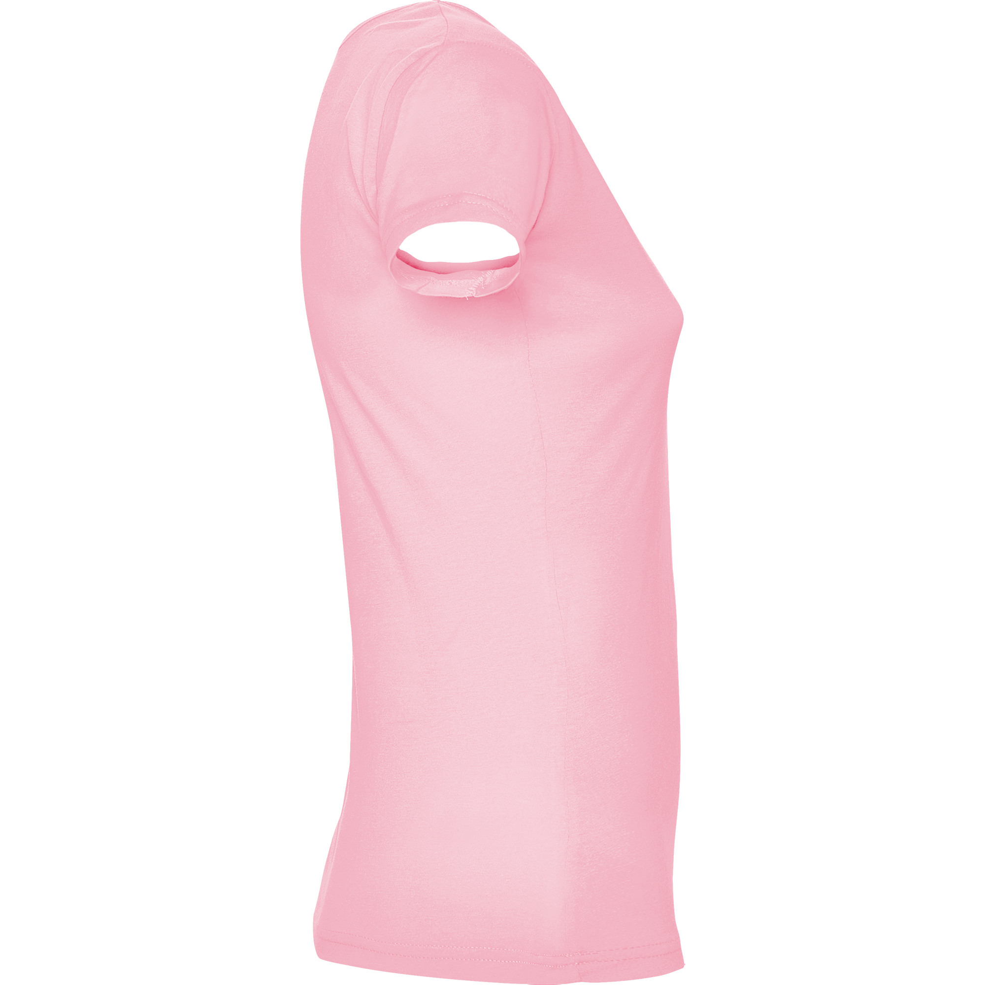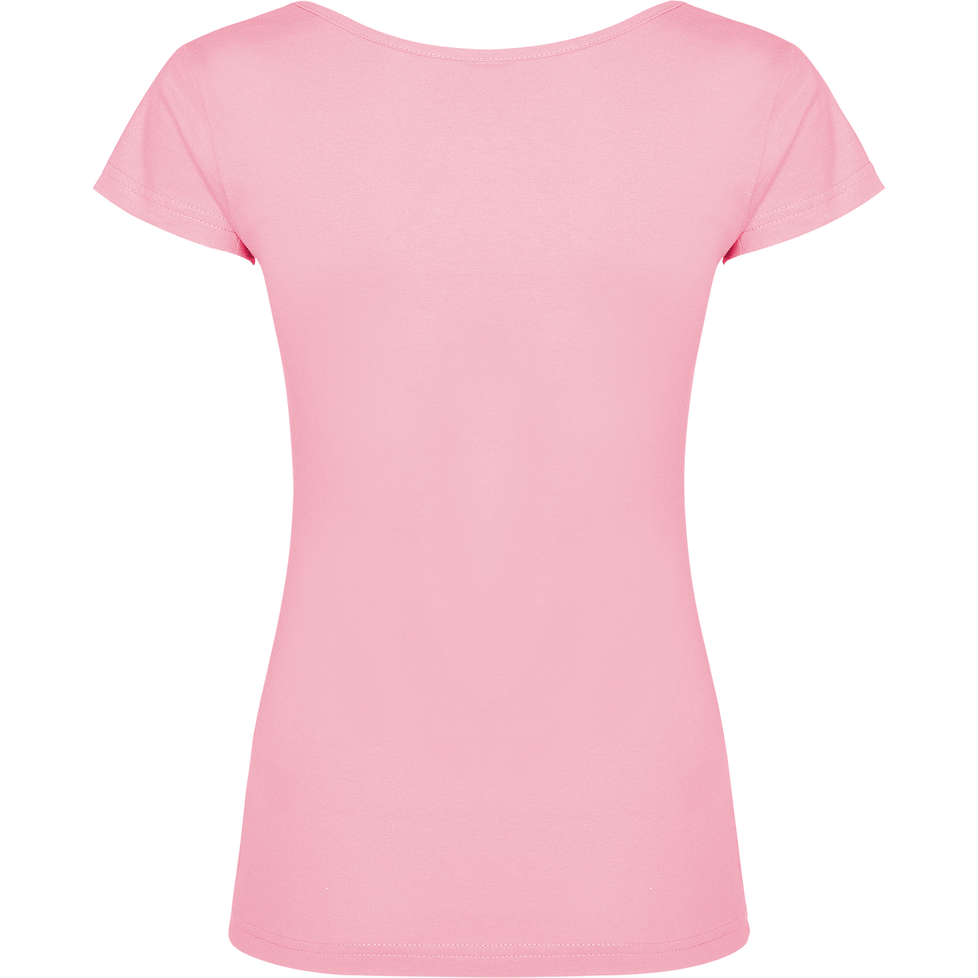 Camiseta de manga corta, escote redondo, ribeteado y pronunciado. Costuras laterales y de corte ajustado.