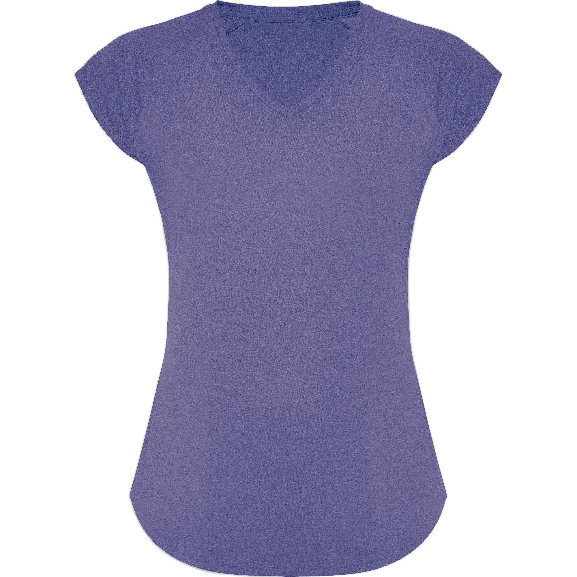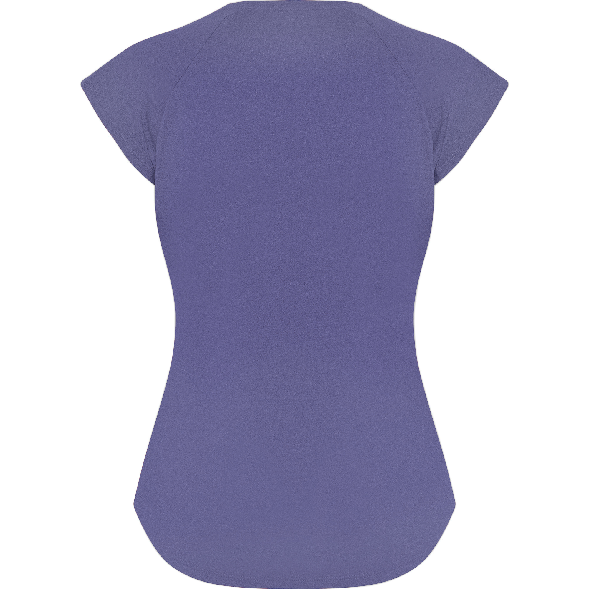 Camiseta técnica multideporte para mujer con manga ranglán. Cuello pico. Tejido poliéster con tacto algodón. Corte entallado. Bajo con forma curva. Costuras overlock a tono en bajo y mangas. Logo Roly reflectante en bajo lateral izquierdo.