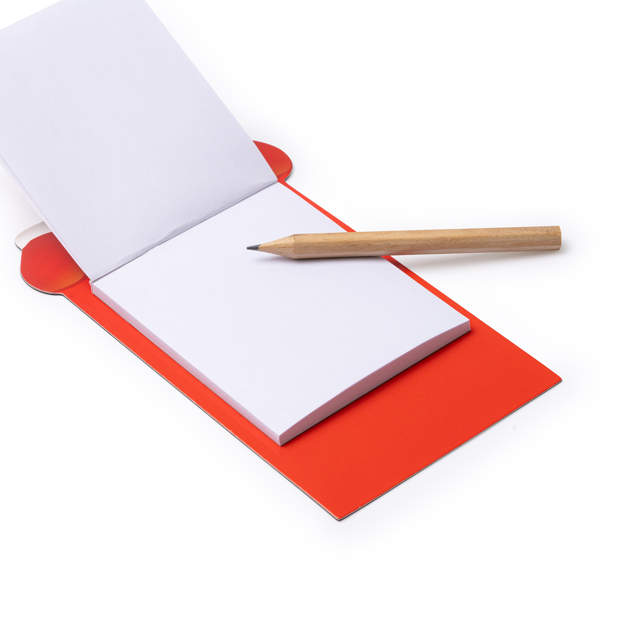 Imán con motivo navideño de Papa Noel. Incluye 45 notas de papel blanco liso y lápiz. Imán en color negro. Composición: Plástico flexible y papel.