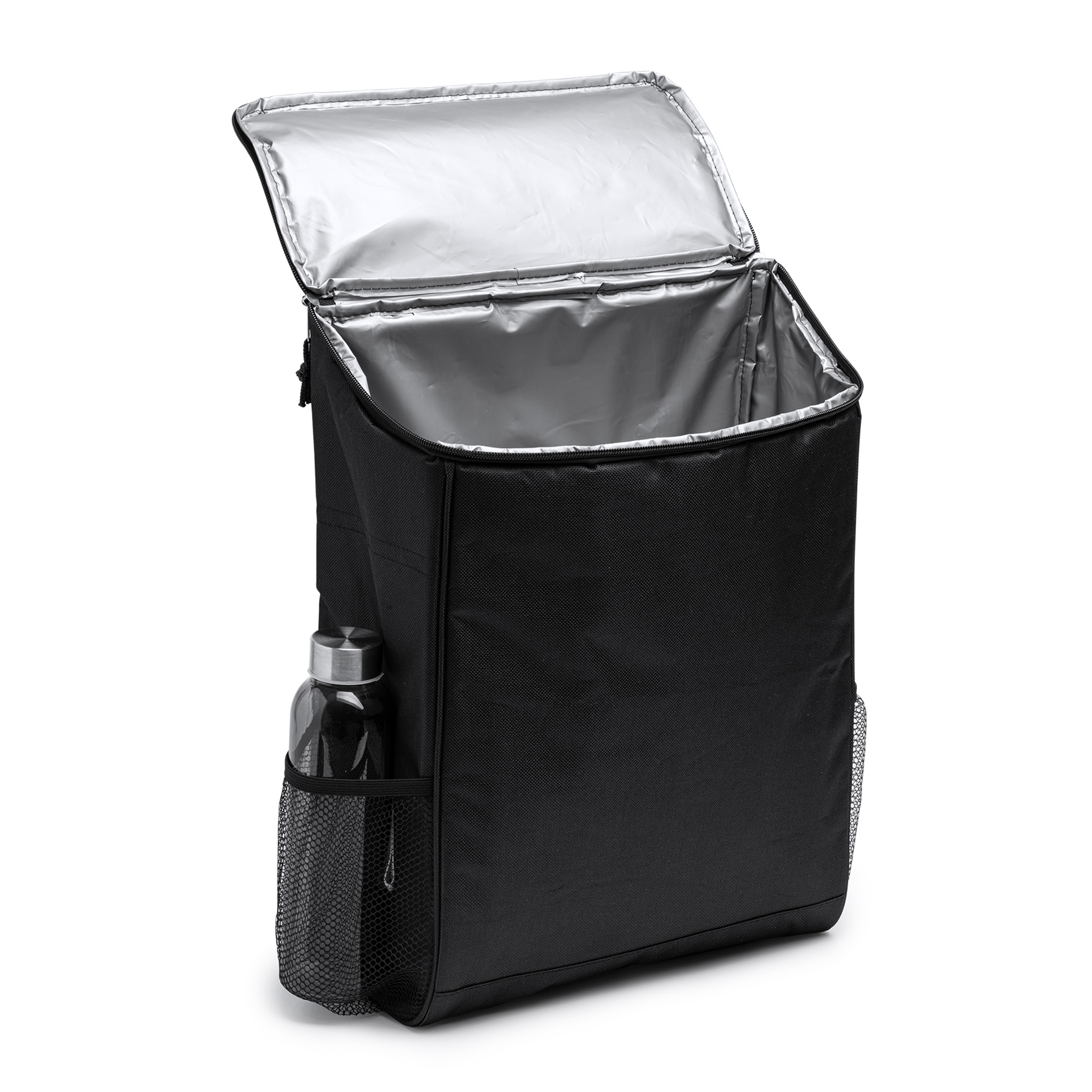 Mochila nevera realizada en RPET idónea para mantener tu bebida o comida en buena temperatura. Bolsillo principal con interior isotérmico y bolsillo en la solapa. Bolsillos laterales de rejilla. Capacidad 18L. Espalda y tiras acolchadas.