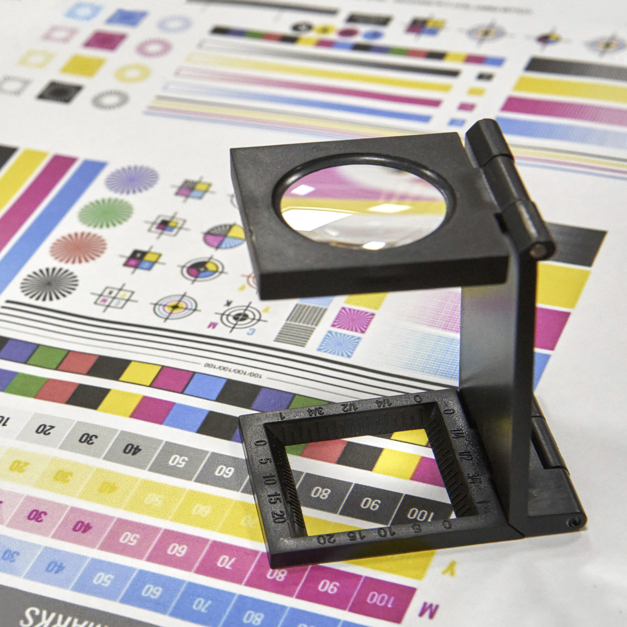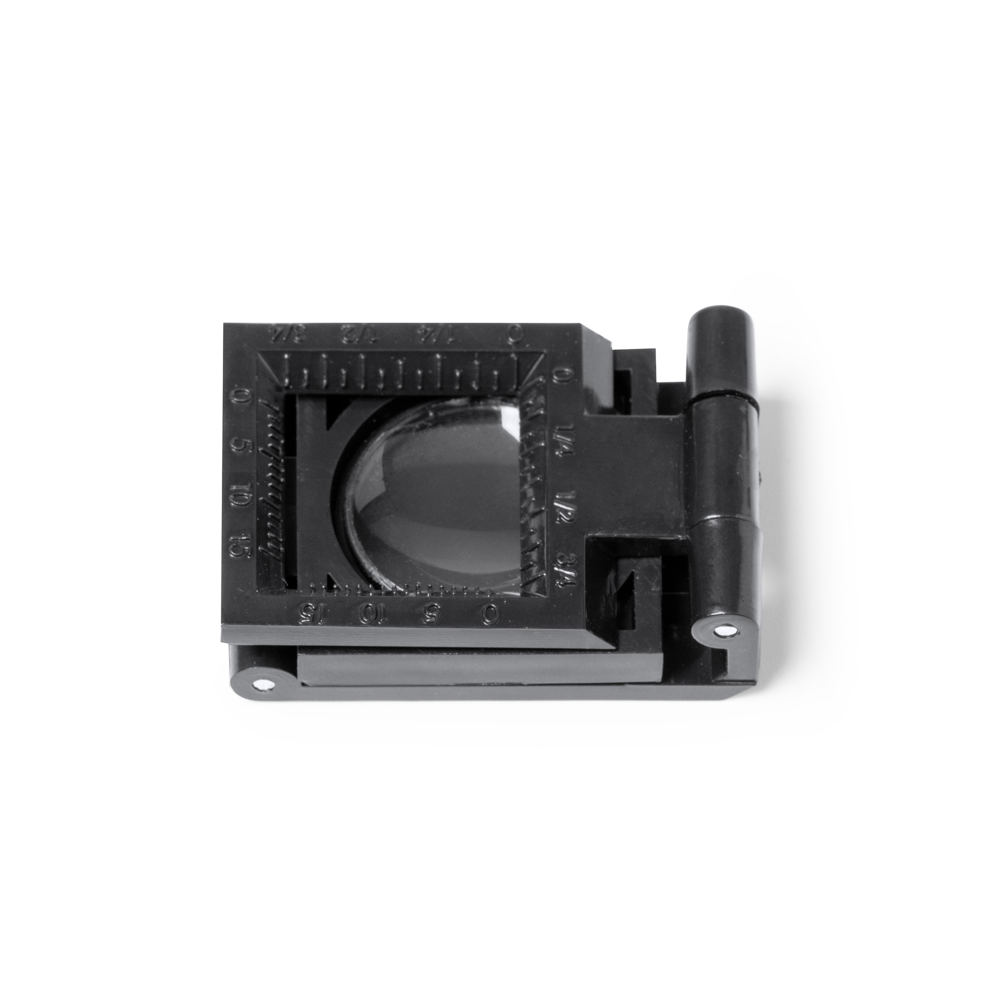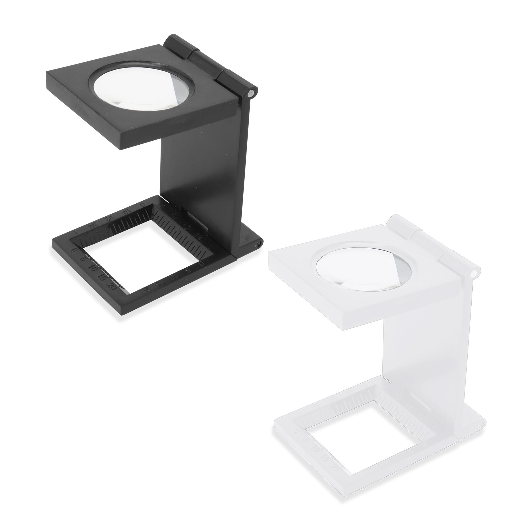 Lupa cuentahilos plegable de 7 aumentos, con regla de medición integrada en el cuerpo.