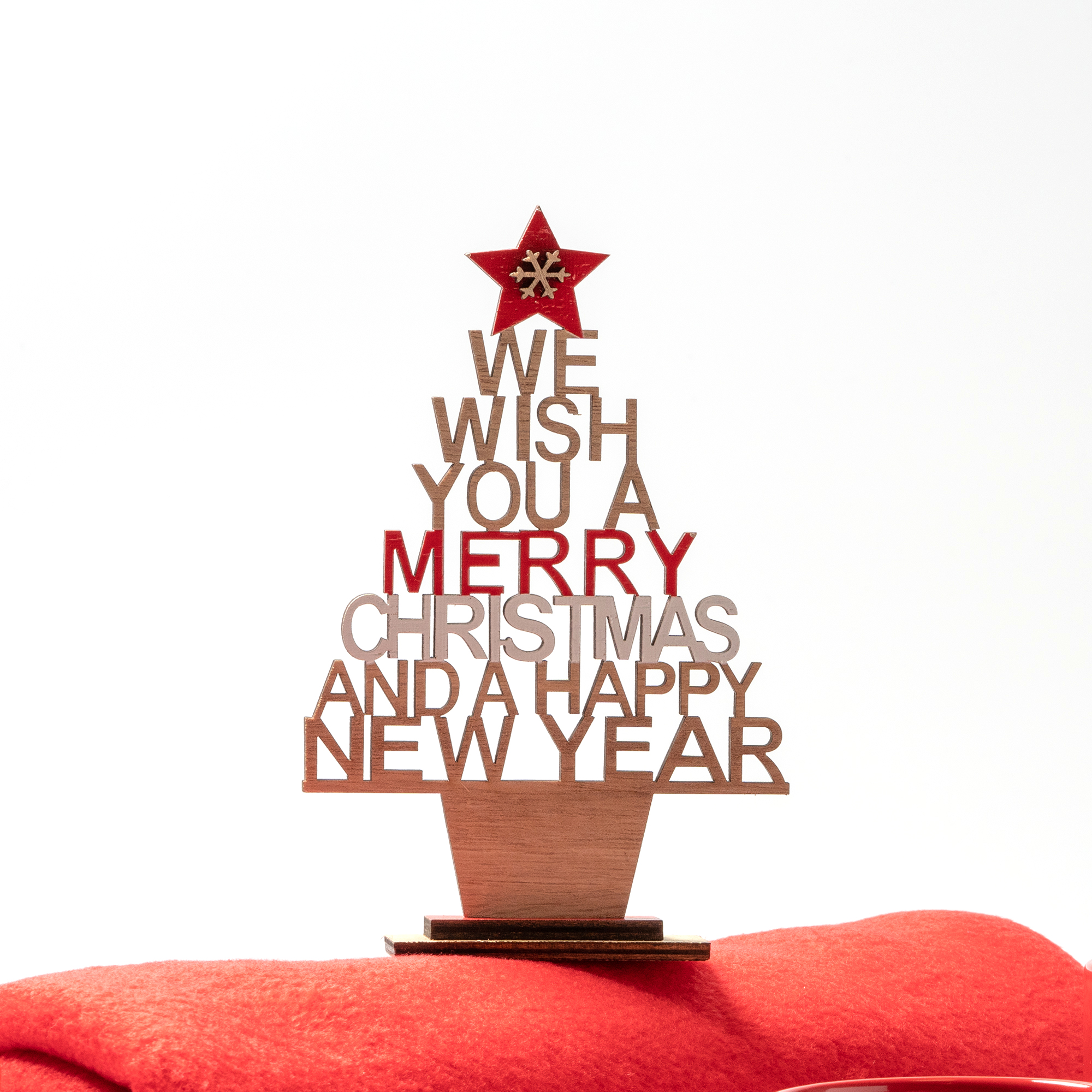 Árbol navideño realizado en madera con mensaje. Base desmontable. El adorno navideño perfecto para decorar tu lugar favorito.